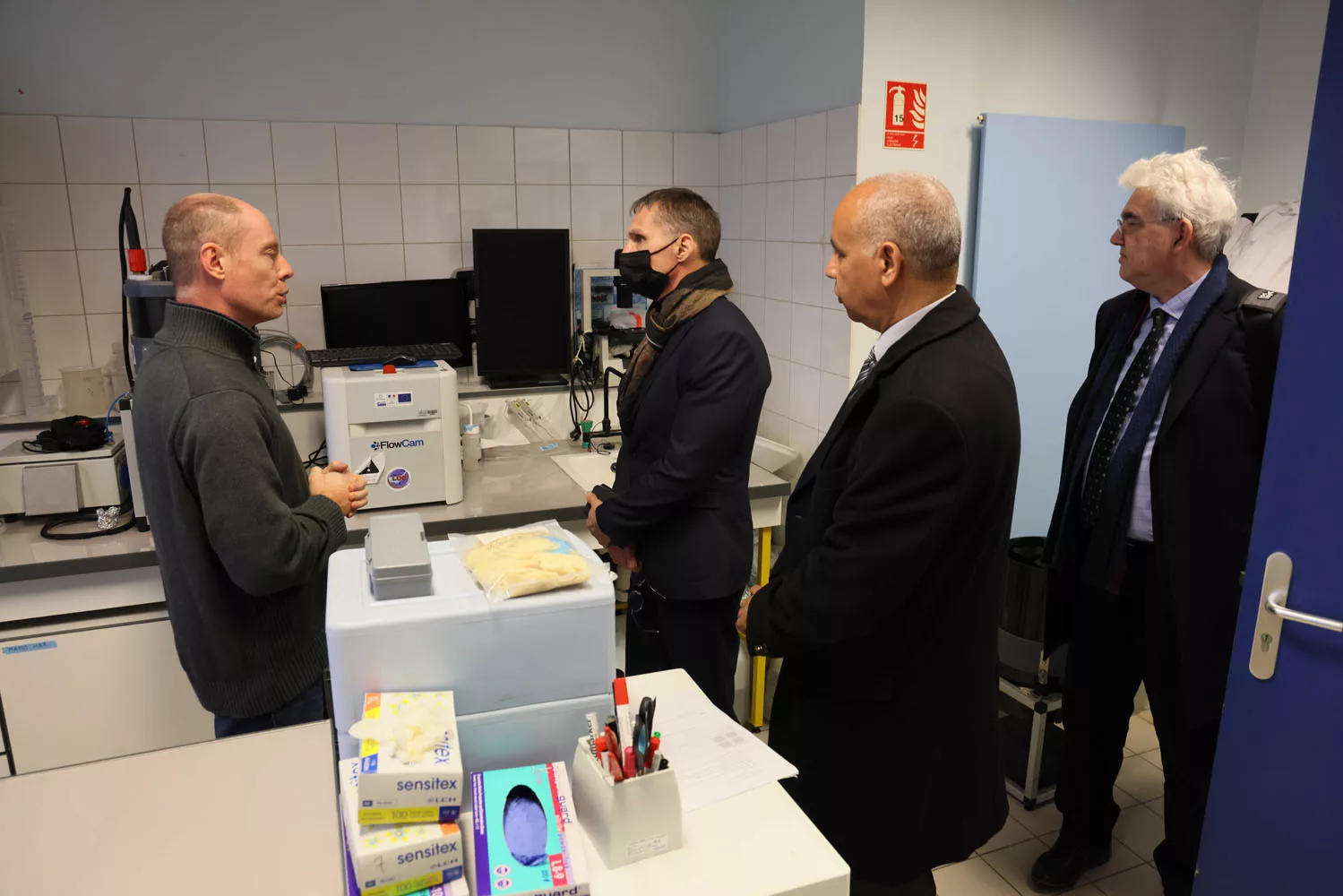 À Wimereux, ensuite, le recteur délégué a pu visiter plusieurs laboratoires du LOG. Dans ce site historique de notre université, installé face à la mer, les chercheurs de l’ULCO, associés au CNRS et à l’Université de Lille, travaillent en interdisciplinarité depuis de nombreuses années.
